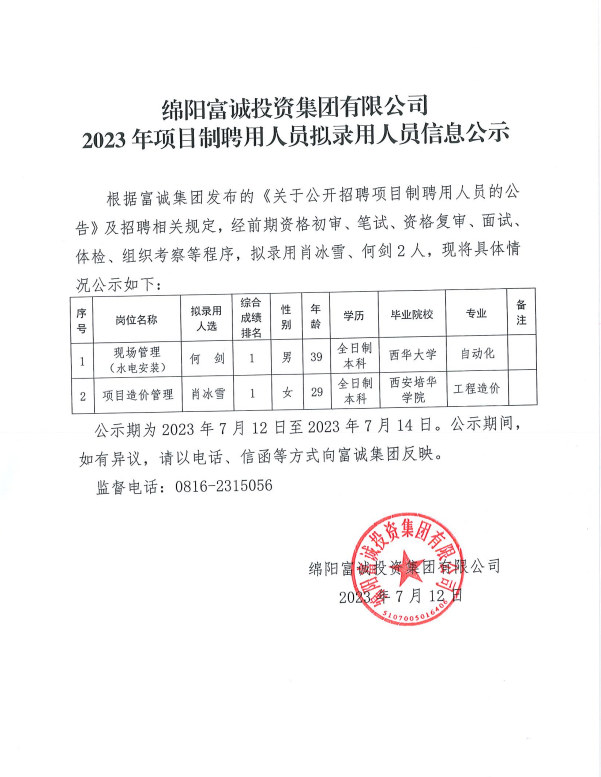 伟德国际1946源于英国2023年项目制聘用人员拟录用人员信息公示