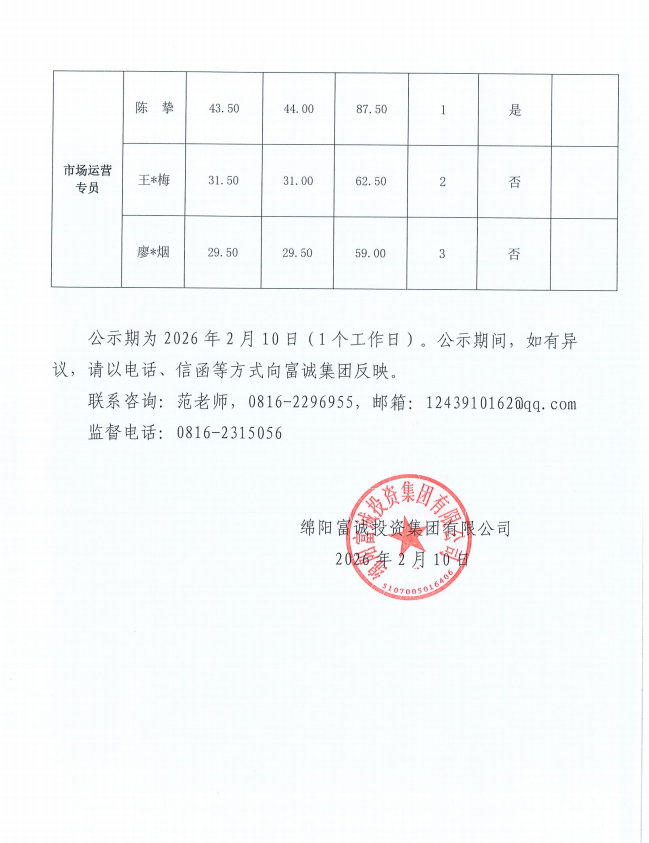 < 四川涪江资本管理有限公司公开招聘工作人员综合成绩公示