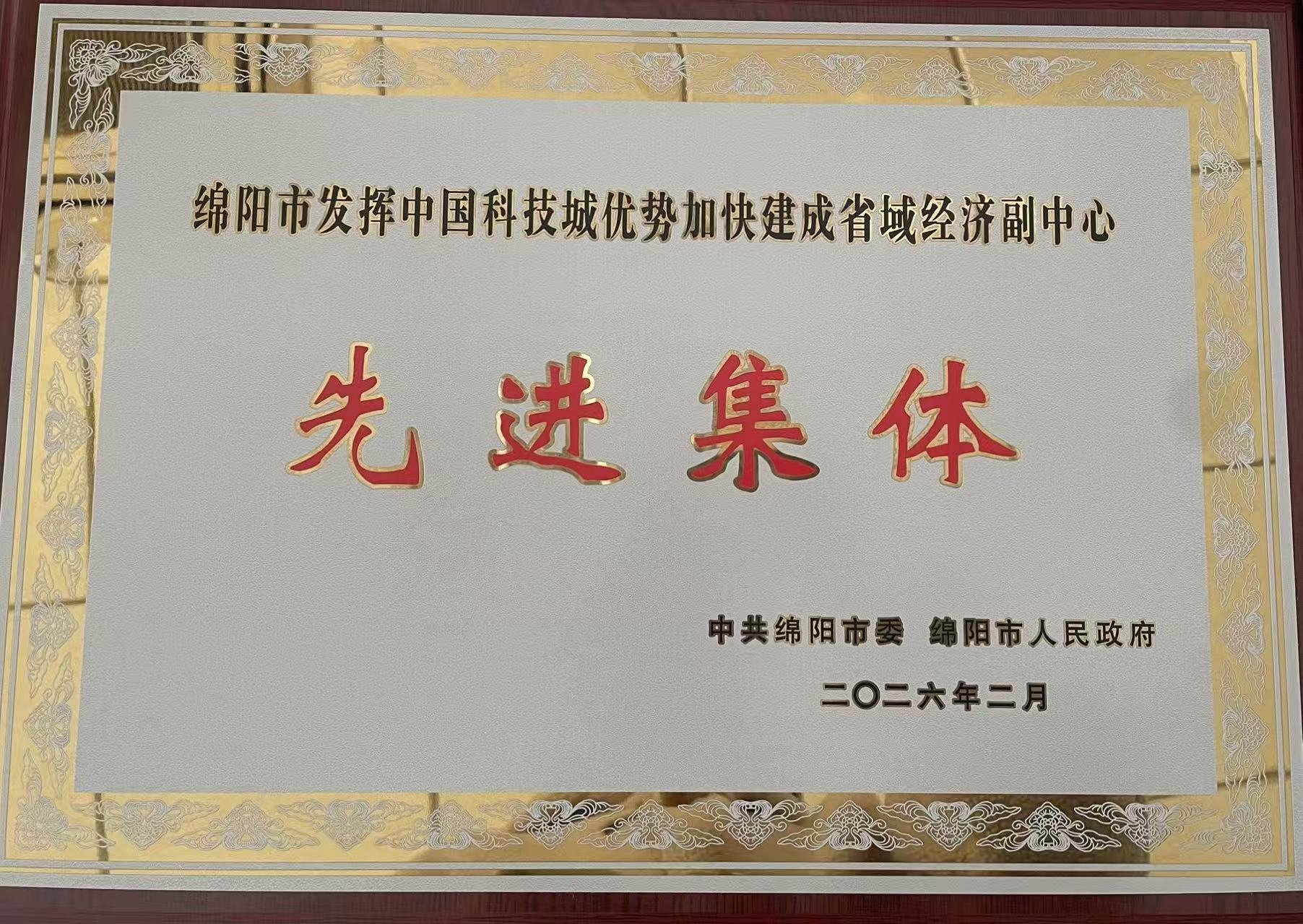绵阳市发挥中国科技城优势加快建成省域经济副中心先进集体名单