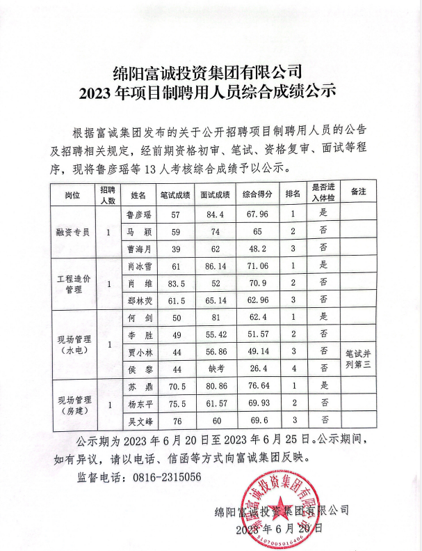 公 告 绵阳富城建筑工程有限公司本次需通过竞争性谈判公开招募涪城区临港经济发展区锂电池配套产业园基础设施建设项目可研代理招标单位,此次报价采用二轮报价下浮比例方式进行。报名时请提交以下材料:1、提供营业执照复印件(三证合一,加盖鲜章),能提供增值税专用发票。2、法定代表人身份证:法定代表人亲自到场的出示身份证原件,存复印件。若法定代表人不能亲自到场的,被委托人应出具法定代表人授权委托书原件和被委托人的身份证及法定代表人授权书(身份证查验原件,存加盖鲜章复印件;法定代表人授权委托书详见附件)。3、申请人应具有在四川省政府采购网…… [更多]
